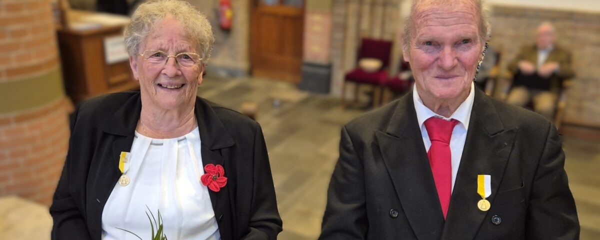Corrie Stam en Ben Lammers kregen ter plekke een ereteken van de Nederlandse Sint-Gregoriusvereniging opgespeld, aan Agaath Dam zal die later in besloten kring alsnog overhandigd worden.