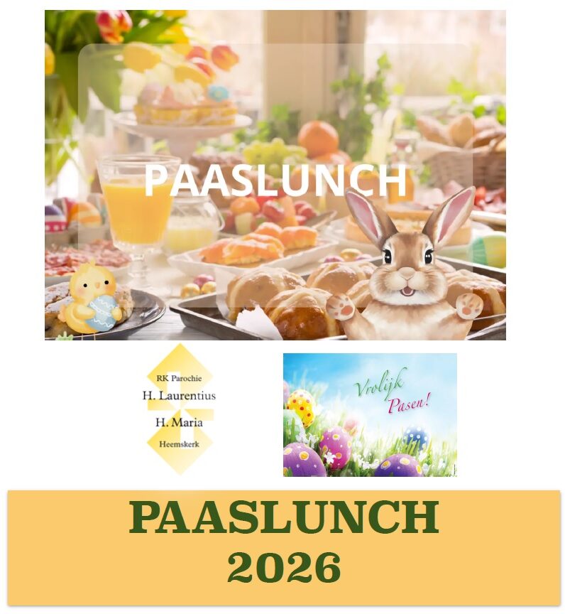 Tijdens de feestelijke eucharistieviering van Pasen mogen de kinderen tijdens de Woorddienst naar het parochiecentrum om op hun eigen manier bezig te zijn met de blijde boodschap van Pasen.Na de Mis mogen alle kinderen paaseieren zoeken rondom de Laurentiuskerk.Na de eucharistieviering in de Laurentiuskerk en het eieren zoeken, gaan we naar de Esplanadezaal van de Mariakerk. Daar houden we een paaslunch en gaan we gezellige activiteiten doen. Nemen jullie je eigen lunch mee en wij gaan samen eten. Iedereen is van harte welkom. Graag eerst aanmelden bij Elisabeth (0614395266)